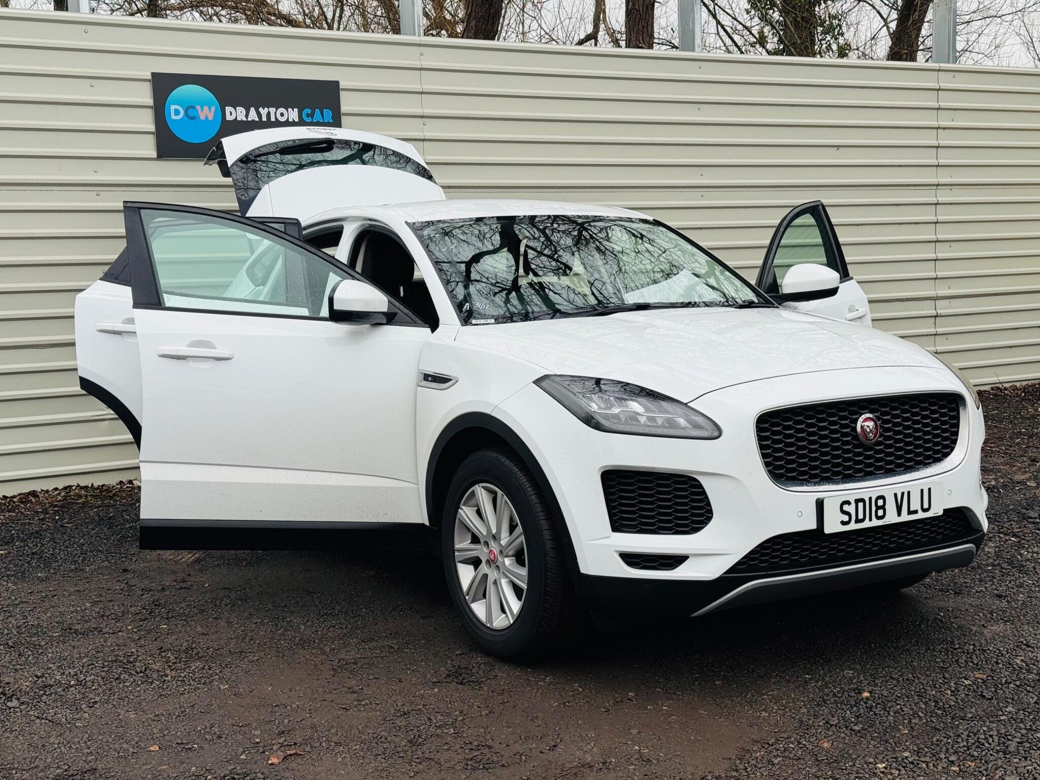 **HOME DELIVERY AVAILABLE**Drayton Car World are delighted to offer this stunning Jaguar E-PACE D180 the car is presented in excellent condition both inside and out. This 2018 Jaguar E-PACE D180 S boasts a full service history, ensuring its excellent provenance. This stylish compact SUV features a 2.0 litre diesel engine and a four wheel drive drivetrain, meeting Euro 6 emission standards. The S trim level includes convenient features such as Bluetooth connectivity, a rear view camera, and a comprehensive park pack with front and rear sensors, complemented by a 360 degree parking aid for effortless manoeuvring. Automatic headlights also come as standard, adding to the ease of driving.
