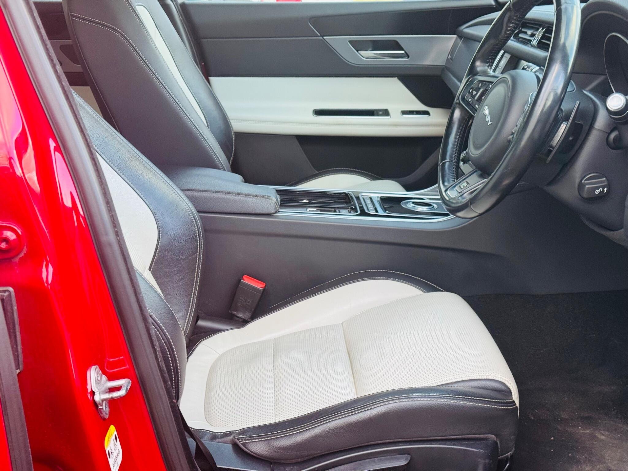 This 2017 Jaguar XF d R-Sport offers an exceptional blend of performance and efficiency, boasting a remarkable 66 mpg fuel economy. This particular model, registered in 2017, features the R-Sport trim and is powered by a 2.0 litre diesel engine that meets Euro 6 emissions standards. Inside, you'll find comfortable heated front seats and a 2-zone climate control system to ensure a pleasant journey for all occupants. The Bi-function Xenon headlights with LED J Blade daytime running lights provide excellent visibility, complemented by front parking aid and parking assistance for added convenience.
