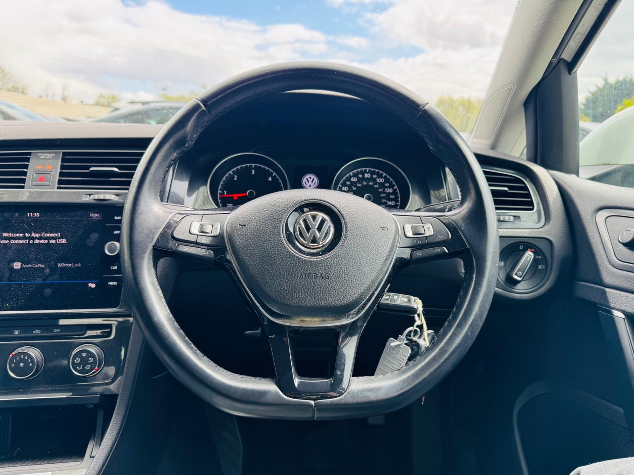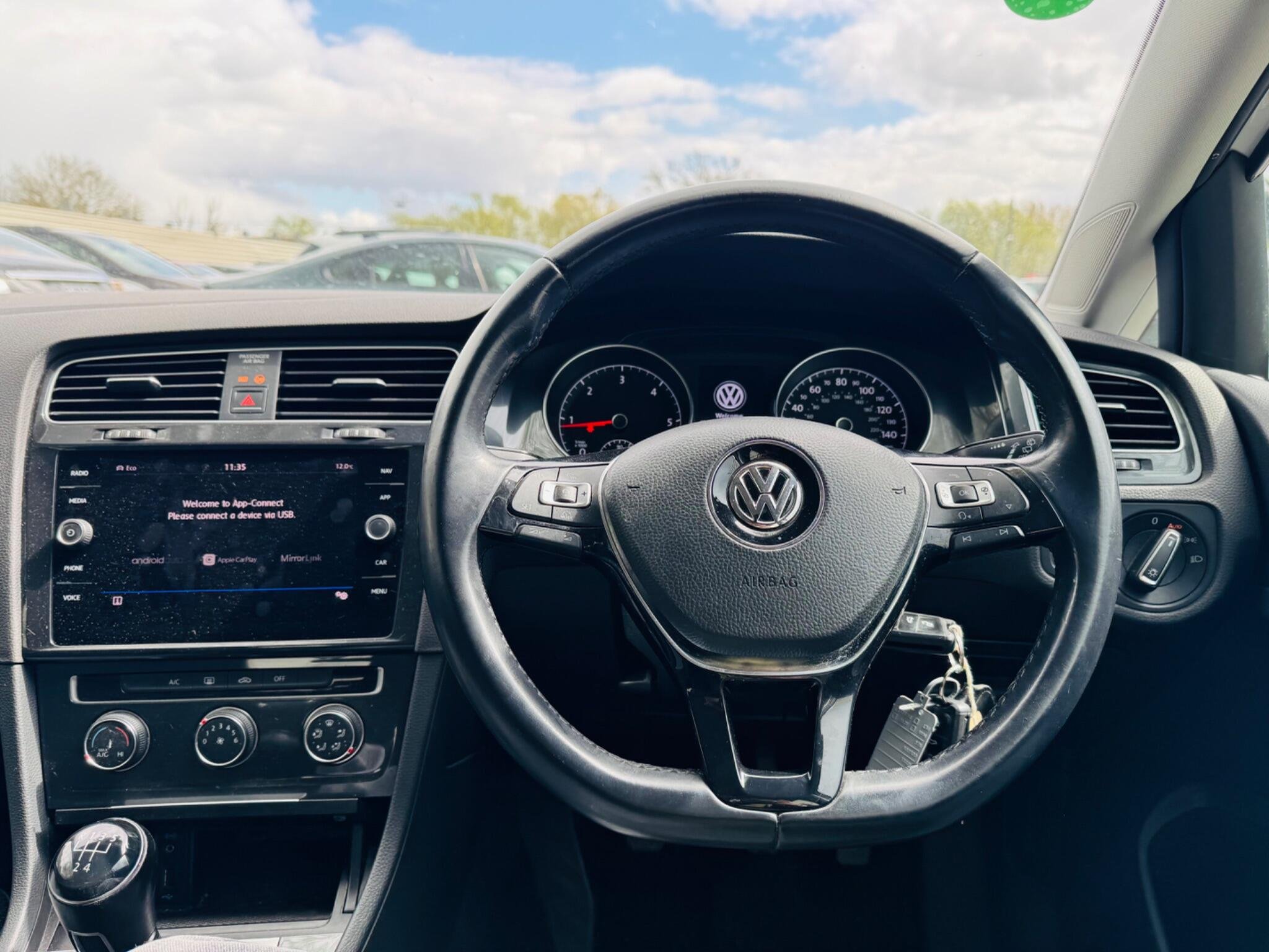 Boasting exceptionally low mileage for its 2018 registration, this Volkswagen Golf TDI SE Nav presents a superb ownership proposition with only two previous keepers. Powered by an efficient 1.6 litre Euro 6 compliant diesel engine, this SE Nav trim model offers a responsive 0-60mph time of 9.8 seconds. It comes equipped with the Composition Media System featuring Bluetooth connectivity, and for seamless smartphone integration, Car Net App Connect is included, supporting both Android Auto and Apple CarPlay. Parking is made simpler with front and rear parking sensors, complemented by automatic headlights thanks to the Convenience Pack, and manual air conditioning ensures a comfortable cabin environment.
